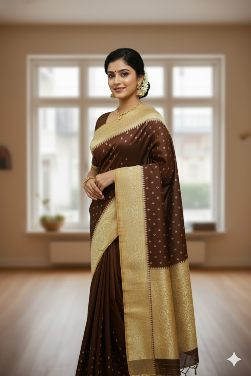 Auspicious Golden Orange Silk Saree with Rich Contrast Border and Antique Gold ZariRs. 1.00 -
